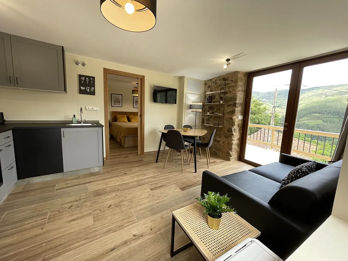 La Casa A Dorna, restaurada para su uso habitual manteniendo todo su encanto, es otro de nuestros alojamientos únicos que podrás disfrutar dentro del Ecolagar o Barqueiro. Su rehabilitación se ha realizado respetando el entorno y buscando un funcionamiento energético eficiente.